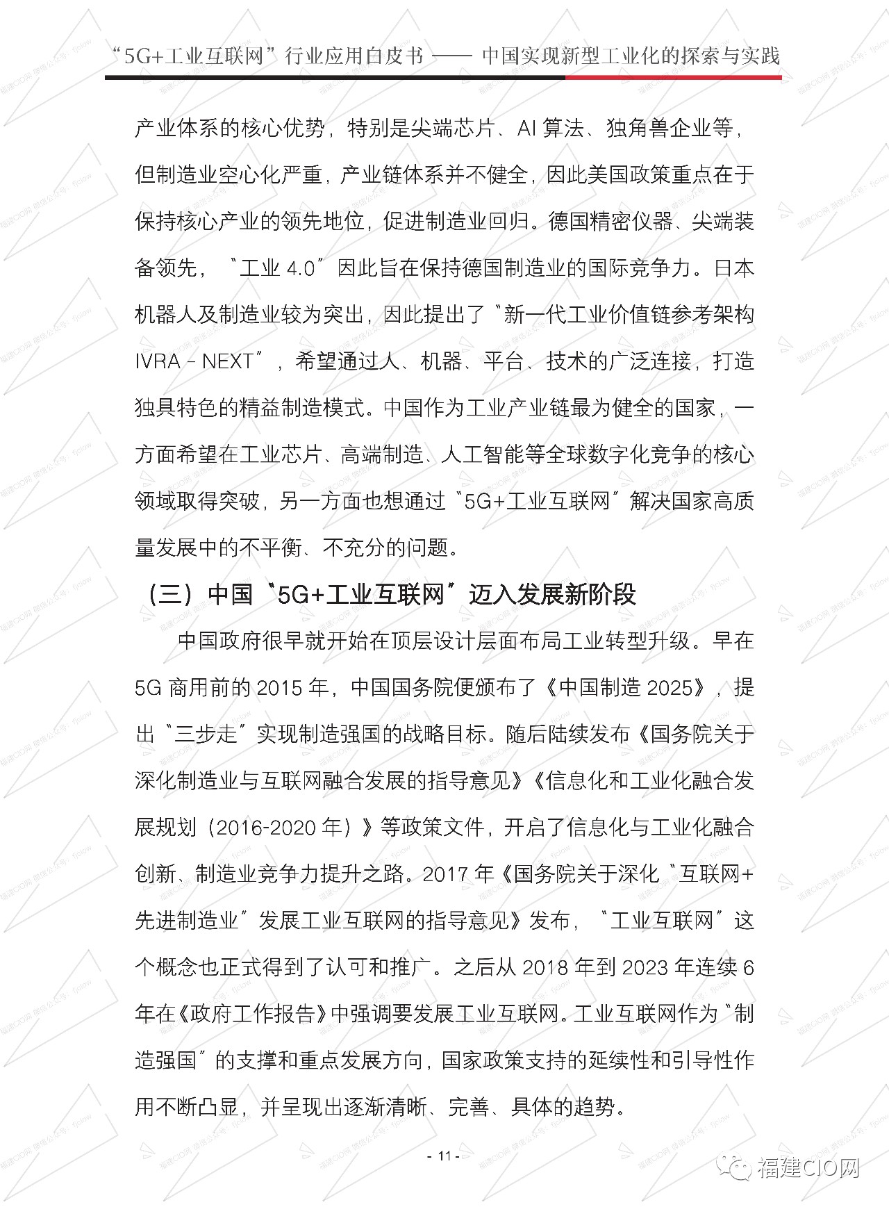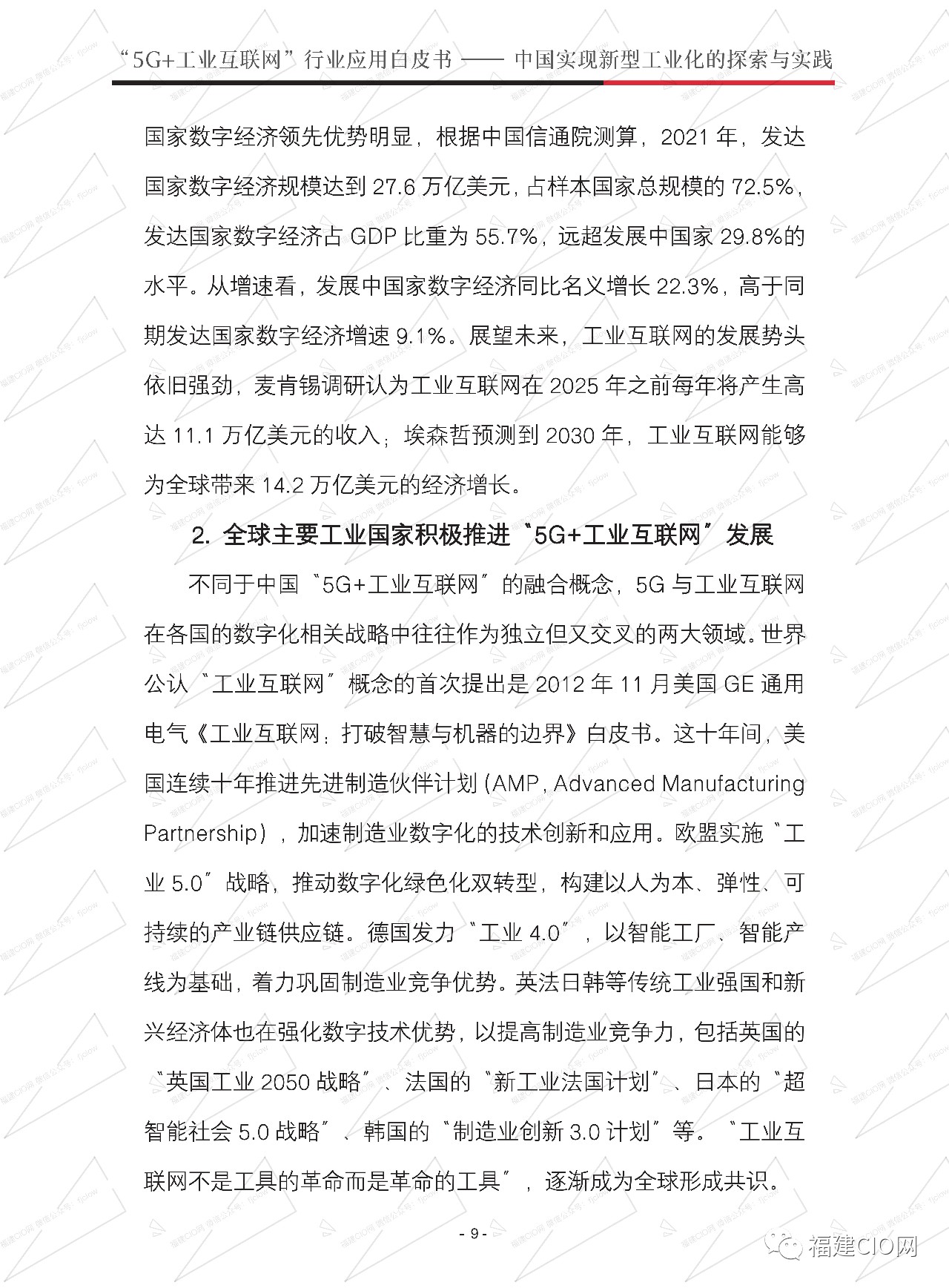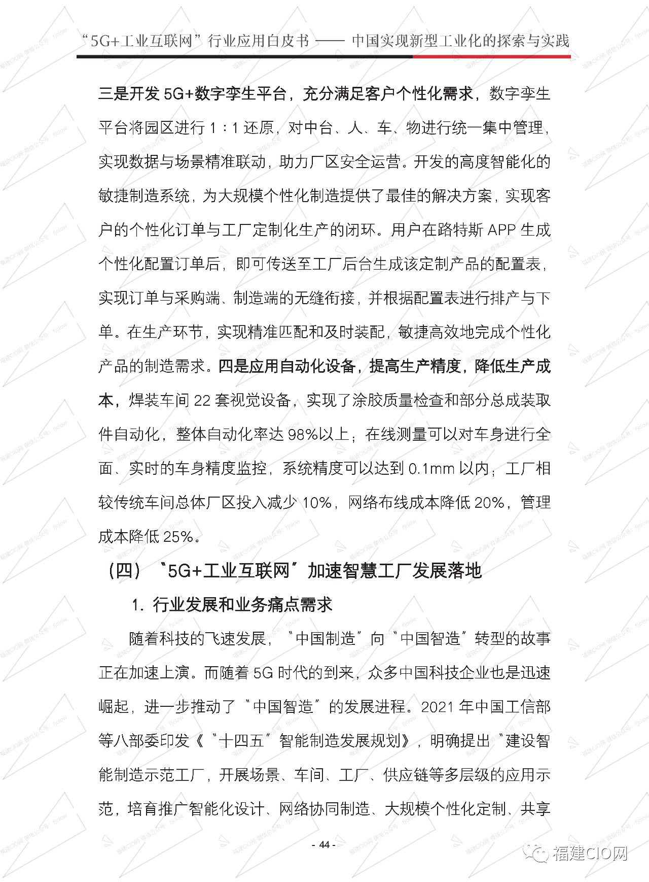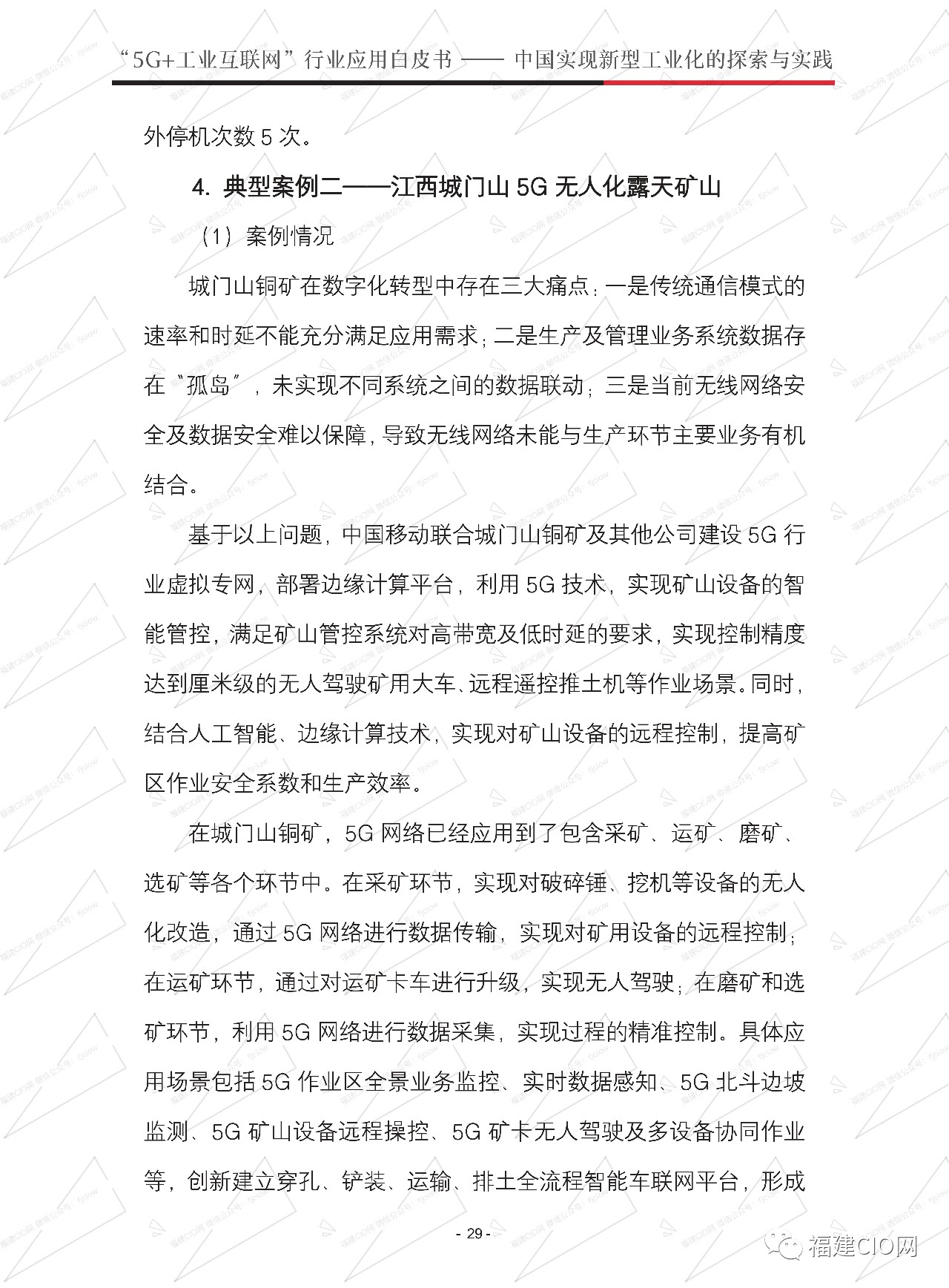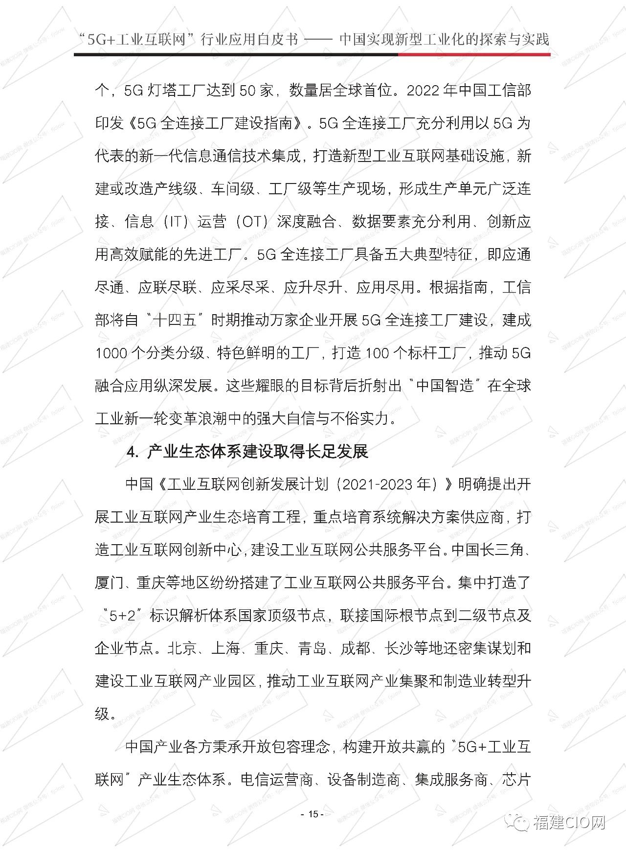 本白皮書(shū)聚焦中國(guó)“5G+工業(yè)互聯(lián)網(wǎng)”行業(yè)發(fā)展態(tài)勢(shì),分析“5G+工業(yè)互聯(lián)網(wǎng)”在數(shù)字經(jīng)濟(jì)中的重要作用,深入解析中國(guó)“5G+工業(yè)互聯(lián)網(wǎng)”發(fā)展情況,洞察礦山、鋼鐵、汽車(chē)等重點(diǎn)行業(yè)應(yīng)用情況,從細(xì)分行業(yè)發(fā)展政策情況、行業(yè)痛點(diǎn)業(yè)務(wù)需求、典型使用場(chǎng)景、成效等方面進(jìn)行解讀,精選已實(shí)現(xiàn)落地的“5G全連接工廠”經(jīng)典案例,并總結(jié)中國(guó)政府為推動(dòng)產(chǎn)業(yè)發(fā)展,采用的政策和市場(chǎng)雙輪驅(qū)動(dòng)、組織創(chuàng)新等行業(yè)應(yīng)用規(guī)?;l(fā)展經(jīng)驗(yàn)。希望中國(guó)在“5G+工業(yè)互聯(lián)網(wǎng)”行業(yè)探索和實(shí)踐的成功經(jīng)驗(yàn)可為金磚伙伴未來(lái)新型工業(yè)化的發(fā)展提供參考。中國(guó)愿與全球各國(guó)共同合作,探索5G和工業(yè)互聯(lián)網(wǎng)融合發(fā)展新模式,讓數(shù)字文明造福各國(guó)人民,推動(dòng)構(gòu)建人類(lèi)命運(yùn)共同體。