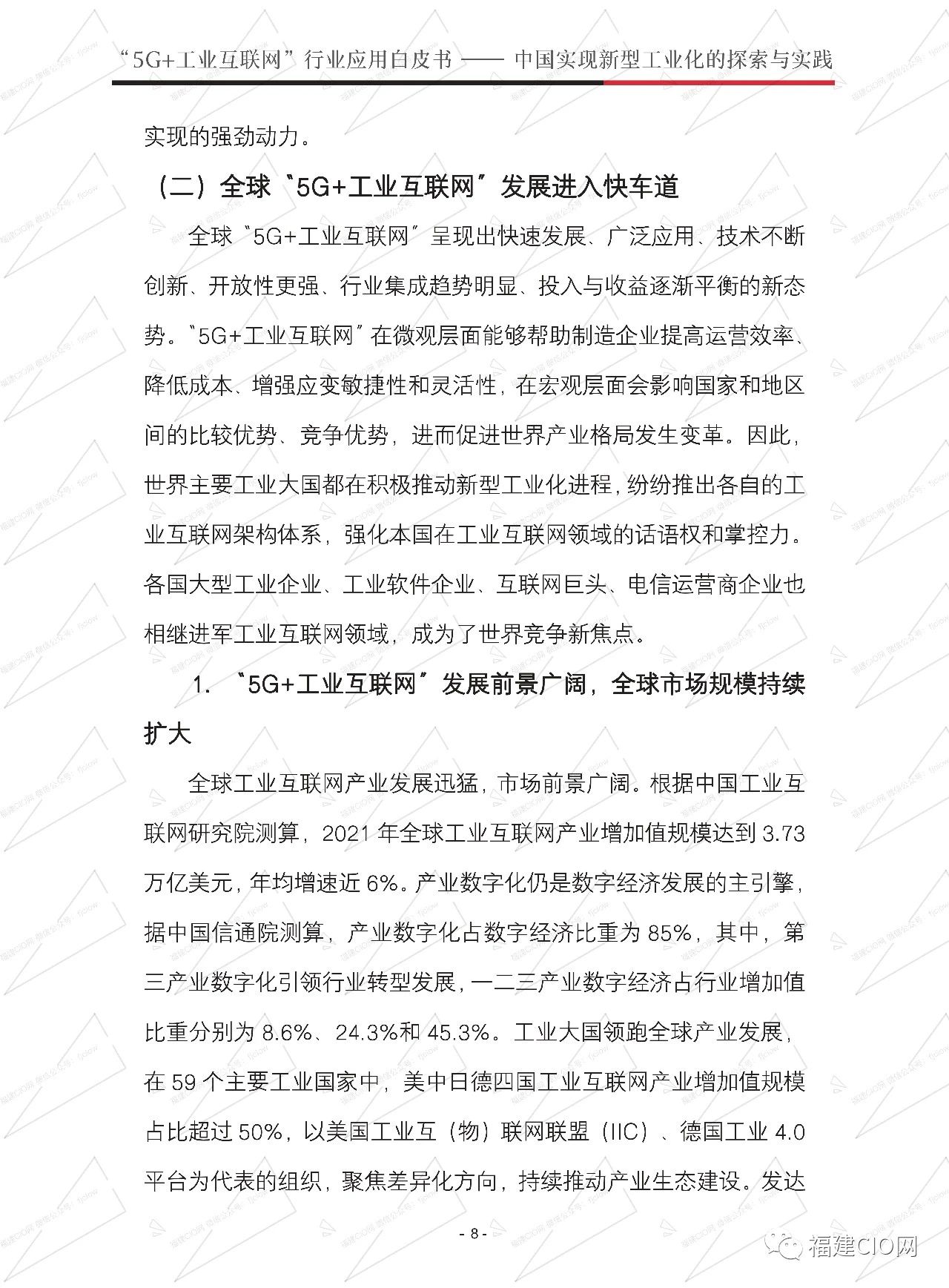 “5G+工業(yè)互聯(lián)網(wǎng)”是指通過(guò)以5G、Al為代表的新一代信息通信技術(shù)與工業(yè)系統(tǒng)全方位深度融合所形成的產(chǎn)業(yè)和應(yīng)用生態(tài),是工業(yè)智能化發(fā)展的關(guān)鍵綜合信息基礎(chǔ)設(shè)施,是第四次工業(yè)革命的重要基石。通過(guò)對(duì)人、機(jī)、物、系統(tǒng)等的全面連接,構(gòu)建起覆蓋全產(chǎn)業(yè)鏈、全價(jià)值鏈的全新制造和服務(wù)體系,為新型工業(yè)化提供了實(shí)現(xiàn)途徑。當(dāng)前,全球新一輪科技革命和產(chǎn)業(yè)變革深入推進(jìn), ?“5G+工業(yè)互聯(lián)網(wǎng)”在中國(guó)正加速推進(jìn)新型工業(yè)化的進(jìn)程,為數(shù)字經(jīng)濟(jì)和實(shí)體經(jīng)濟(jì)的深入融合提供了新的工具箱,為中國(guó)經(jīng)濟(jì)發(fā)展注入新動(dòng)能,為疫情恢復(fù)后的世界經(jīng)濟(jì)創(chuàng)造新的發(fā)展機(jī)遇。