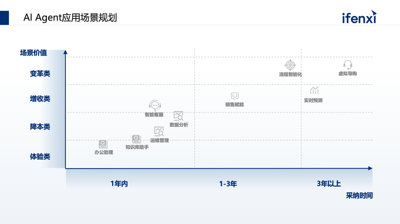福建CIO網(wǎng)注:根據(jù)愛分析報告,AI Agent 場景價值大致分為體驗類、降本類、增收類和變革類。變革類是指產(chǎn)生新的商業(yè)模式并帶來新的業(yè)務(wù)收益,增收類則指增加現(xiàn)有收益,體驗類和降本類則較為明確易懂。需要著重指出的是,盡管降低成本并增加收入以及完成變革是更大的價值所在,但在當前階段,對于許多公司,例如金融行業(yè)的銀行、保險和證券以及消費類企業(yè),無論他們是品牌商還是零售商,只要他們面向C端用戶,并且存在線上化業(yè)務(wù),那么體驗類價值的比重就會相當之高。