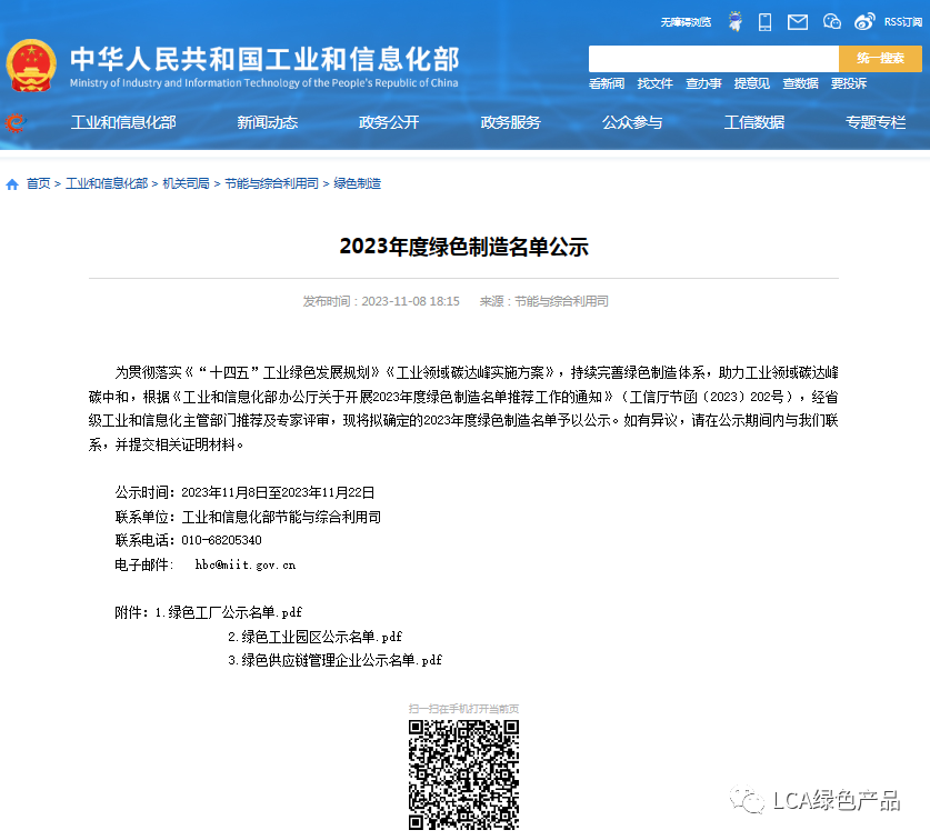 2023年度國家級 綠色制造名單的通知 (附綠色制造名單全文) 具體名單以公示為準